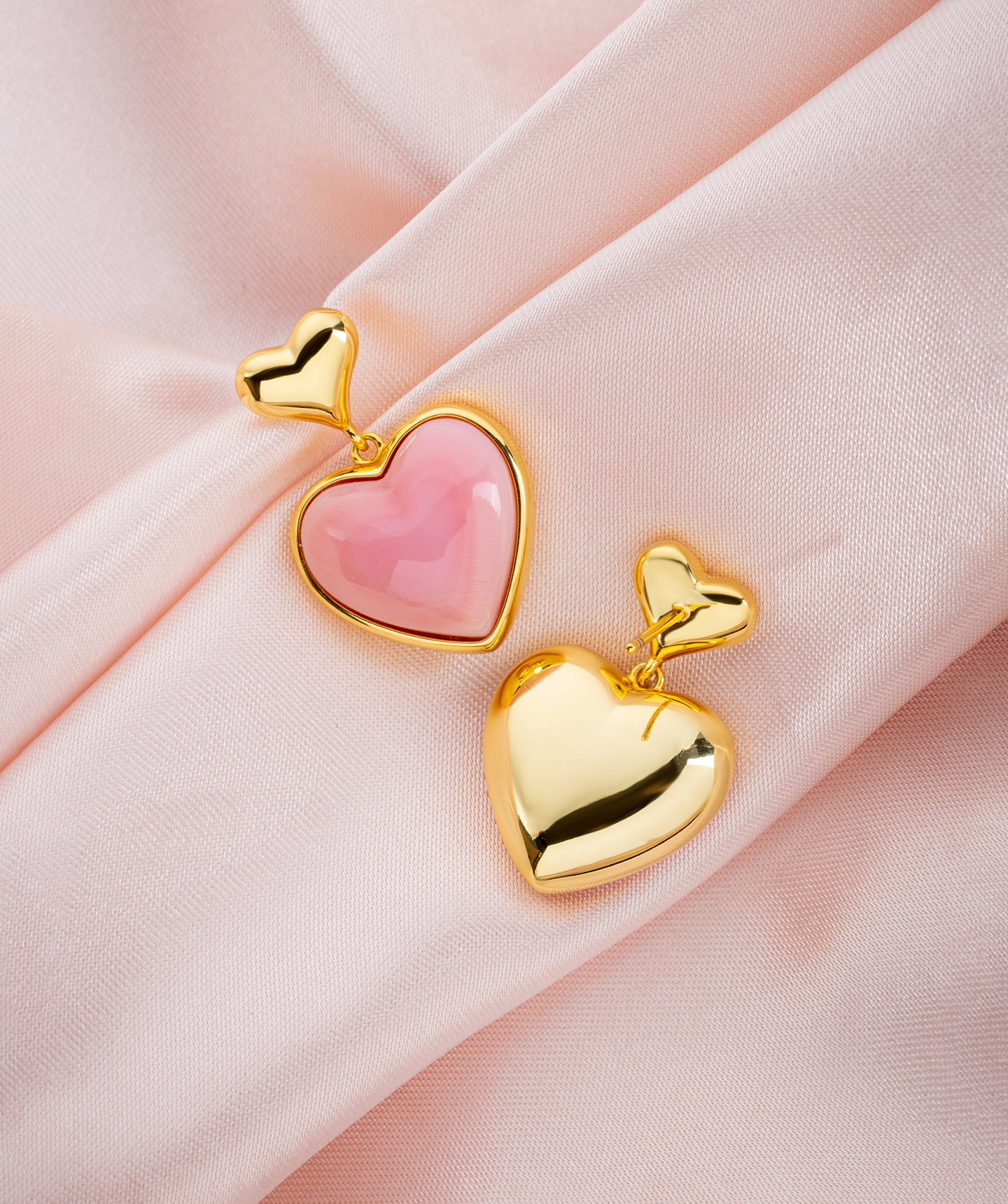 Western Chic Heart Earrings - Natural MOP & Queen Conch