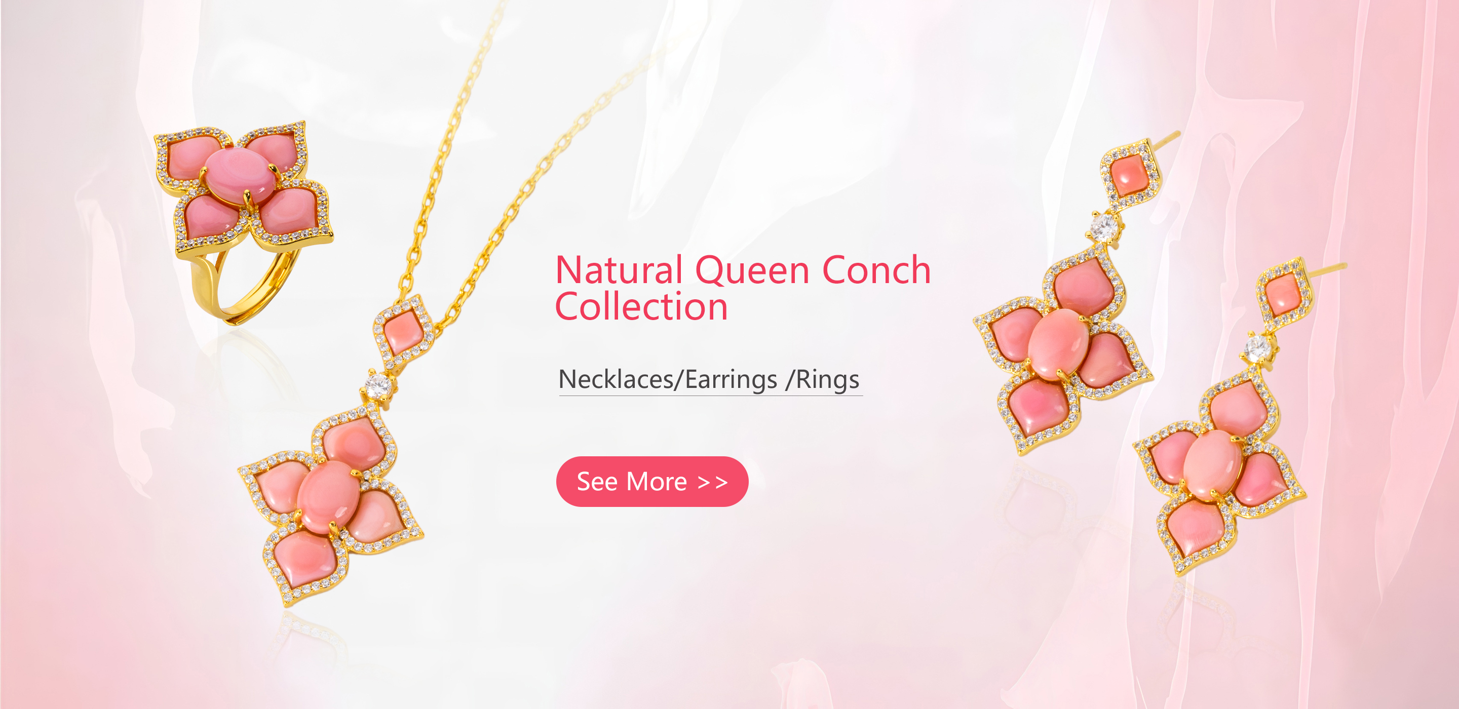 Carved Plum Blossom Natural Queen Conch Stud Earrings