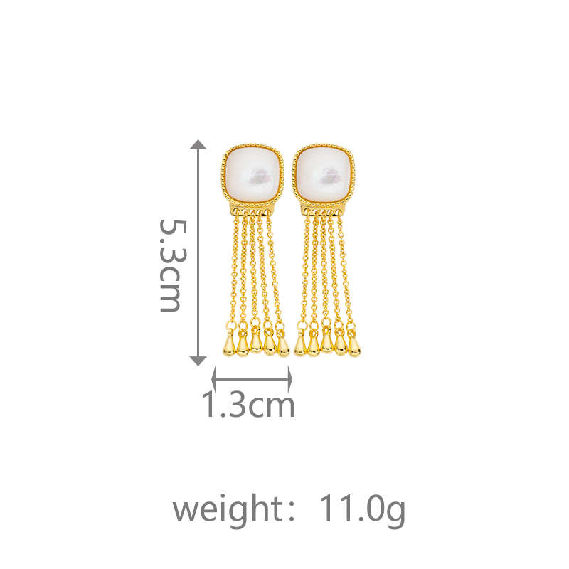 18K Gold Tassel Drops - Square White MOP Earrings