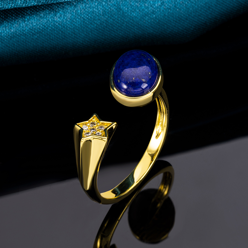 Bohemian Lapis Lazuli Moon & Stars Ring