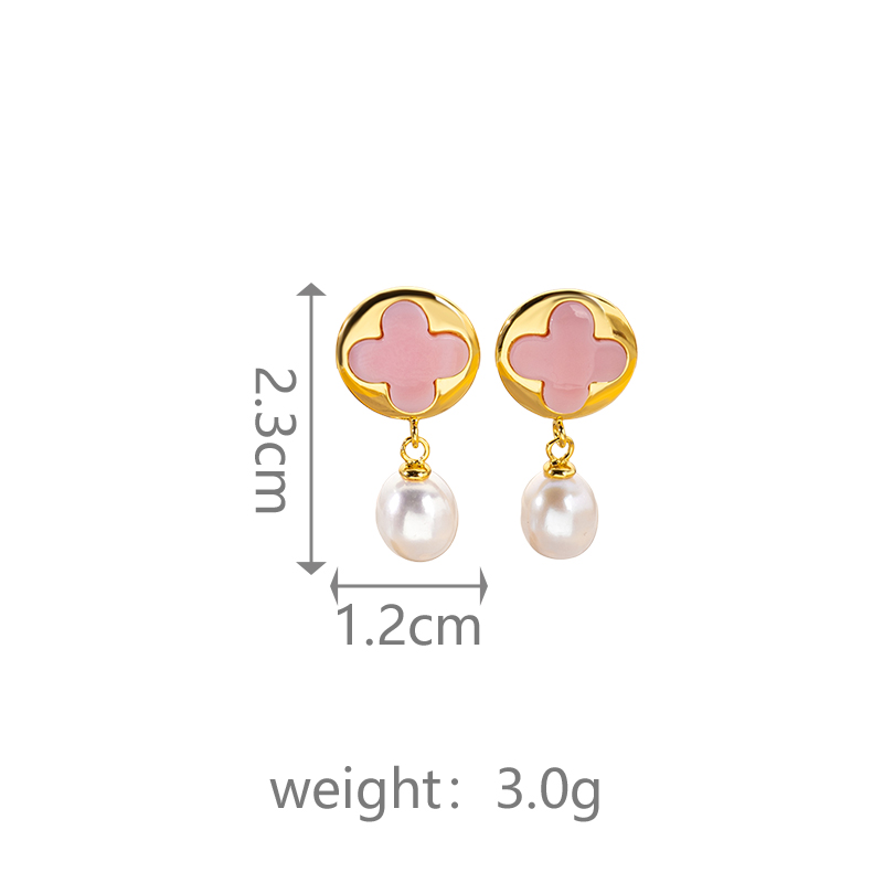 Girly Pink Clover Earrings: Queen Conch & Pearl