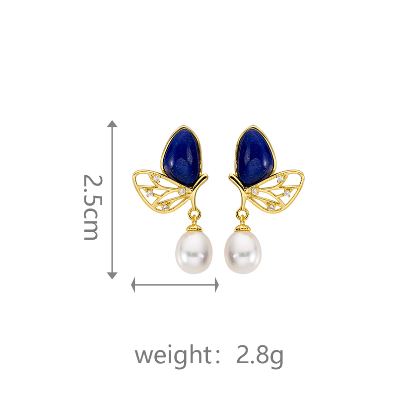 Lapis Butterfly & Pearl Drop Earrings | Natural Gemstone
