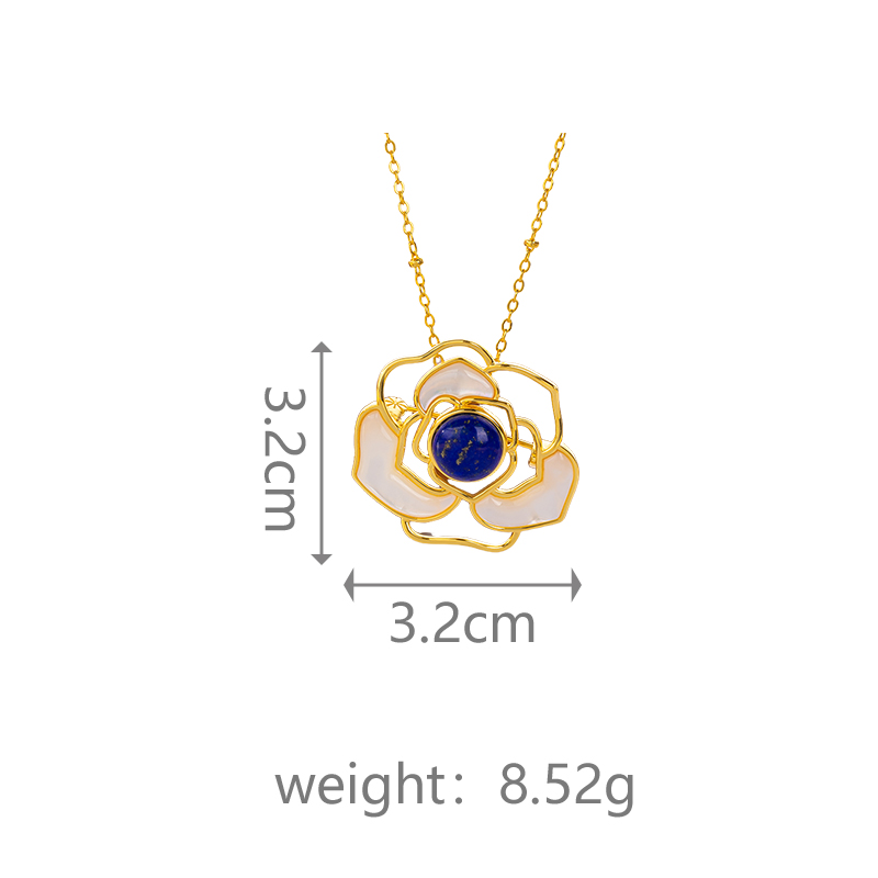 Lapis Lazuli & Mother of Pearl Camellia Necklace - Elegant Floral Jewelry