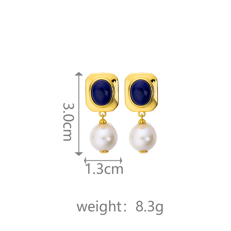 Lapis & Pearl Drop Earrings | Vintage Classic Style