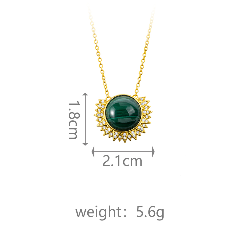 Luxe Malachite Sunflower Pendant – Slender Chain Elegance