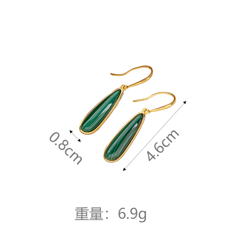 Luxury Natural Malachite Earrings for Women | Long Teardrop Hook Dangle Jewelry | Timeless Elegance & Skin-Brightening Design | Factory Direct Wholesale Pricing