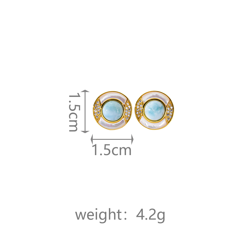Luxury Round Stud Earrings Inlaid with Larimar & Zircon Shiny Fresh Women's Earrings