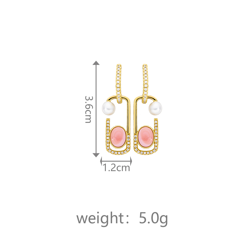 Natural Conch Shell & Pearl Geometric Drop Earrings
