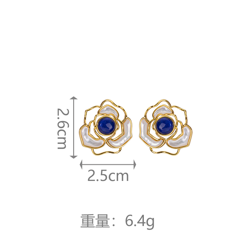 Natural Lapis Lazuli Camellia Stud Earrings - Elegant & Luxurious
