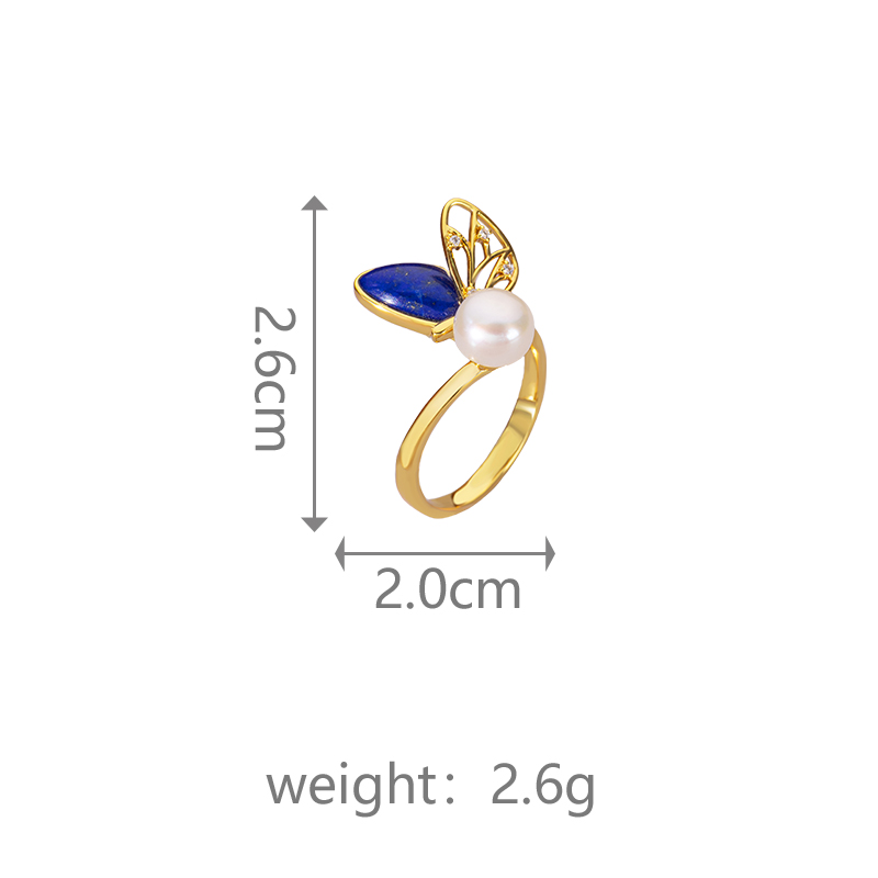Natural Lapis Lazuli Fashion Butterfly Ring Elegant Unique Band