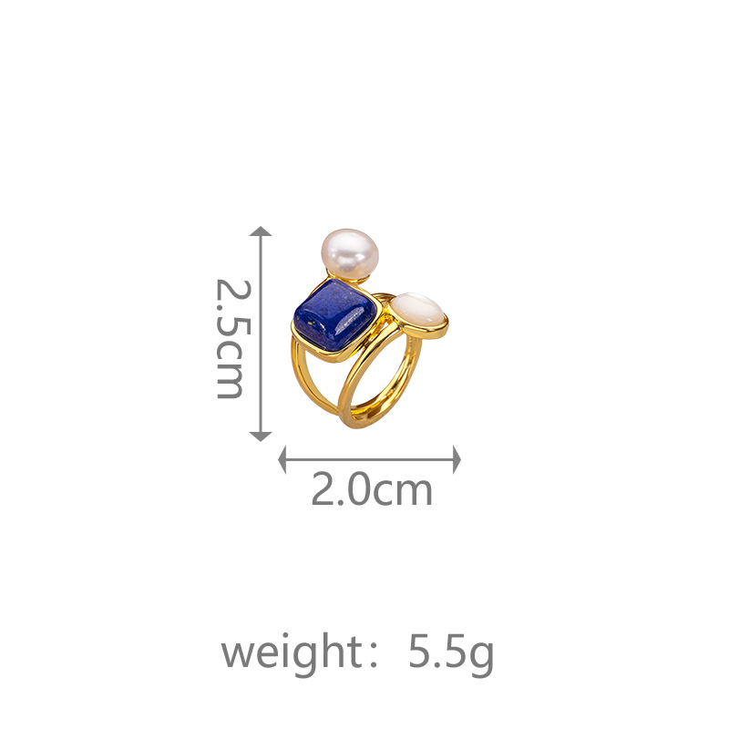 Natural Lapis Lazuli Square Sugar Cube Mother of Pearl Pearl Open Ring for Women