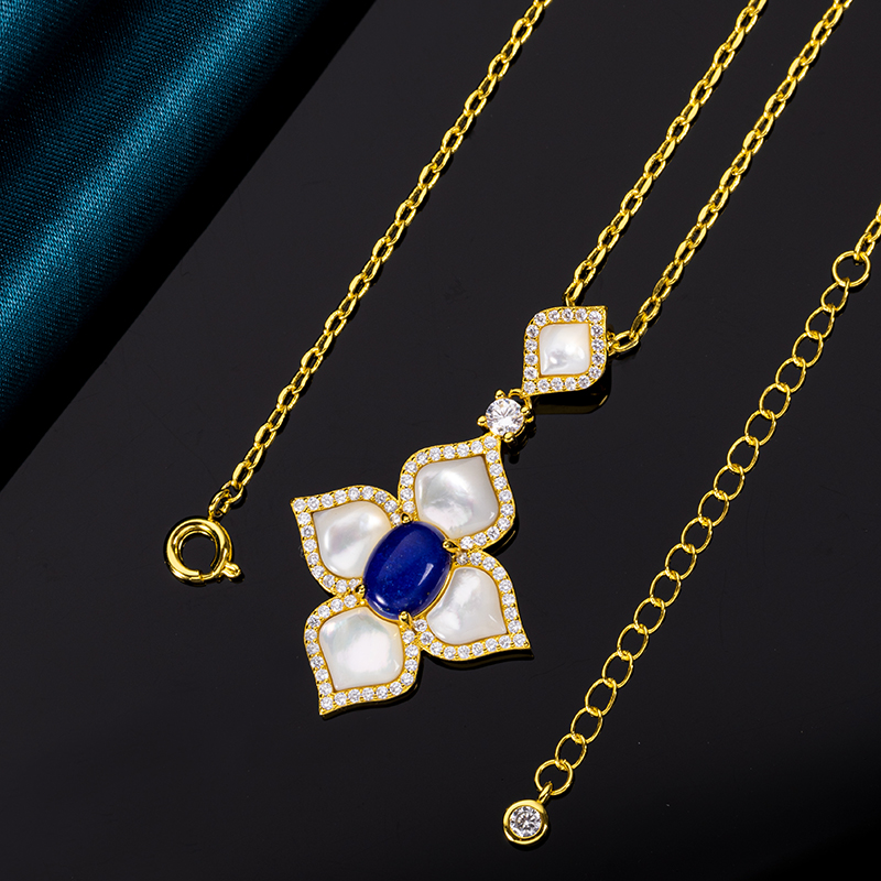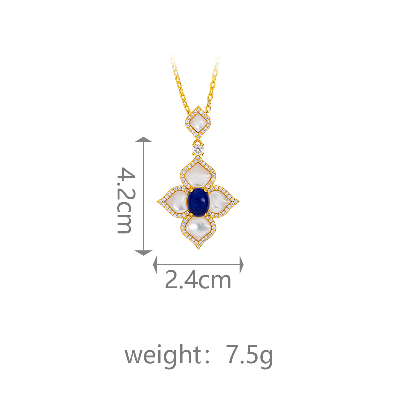 Natural Lapis Lazuli & White MOP Clover Necklace