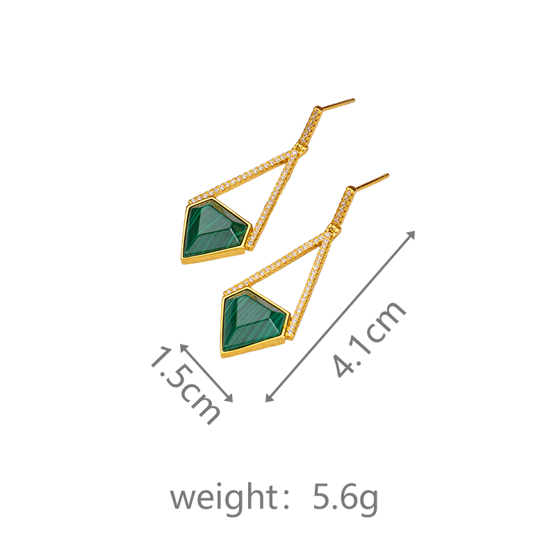 Natural Malachite Faceted Earrings | Triangular European Chic