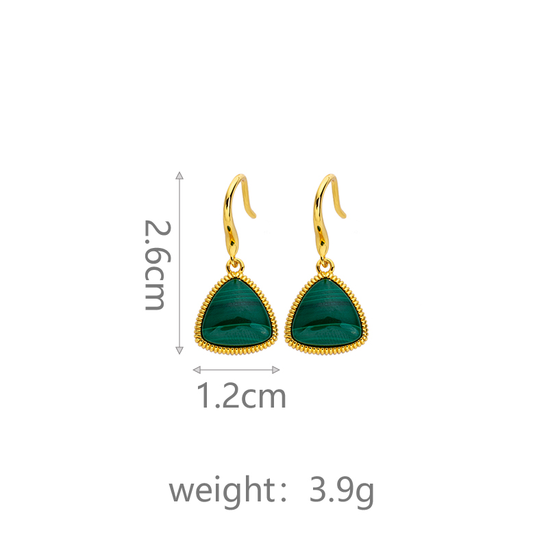 Natural Malachite Triangle Earrings: Minimalist Vintage Style