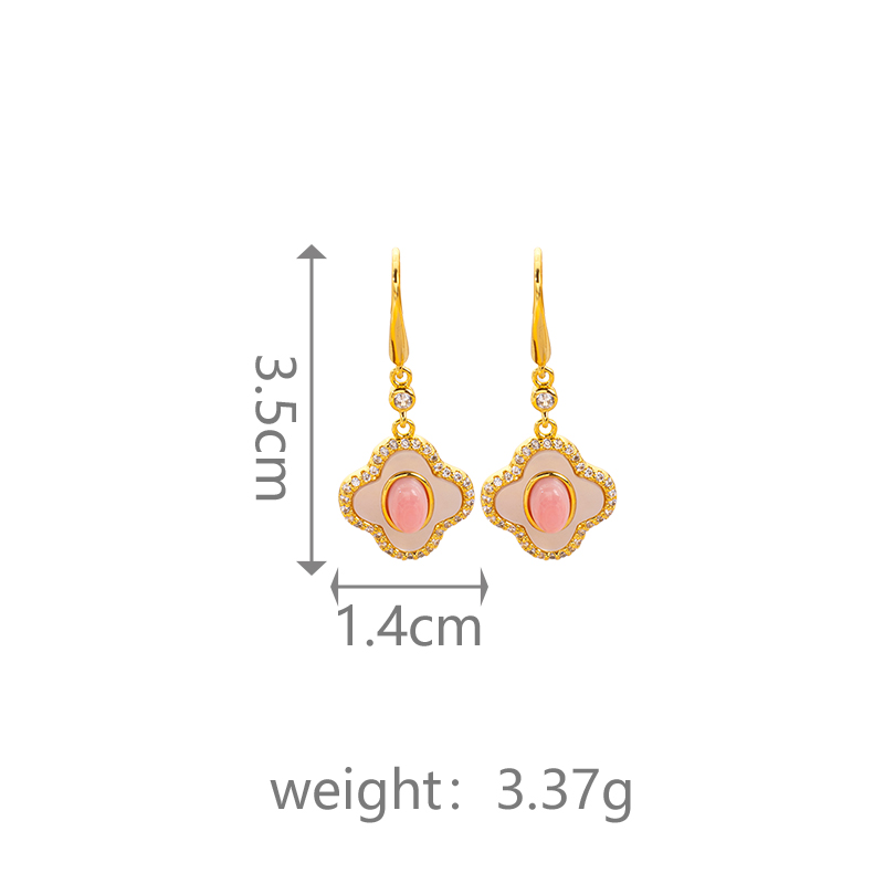 Oval Clover Hook Earrings: Pink Queen Conch & White MOP