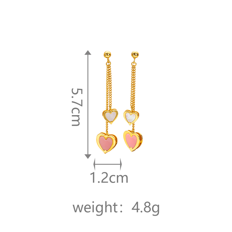 Queen Shell & MOP Double Heart Earrings - Delicate Fringe Dangle