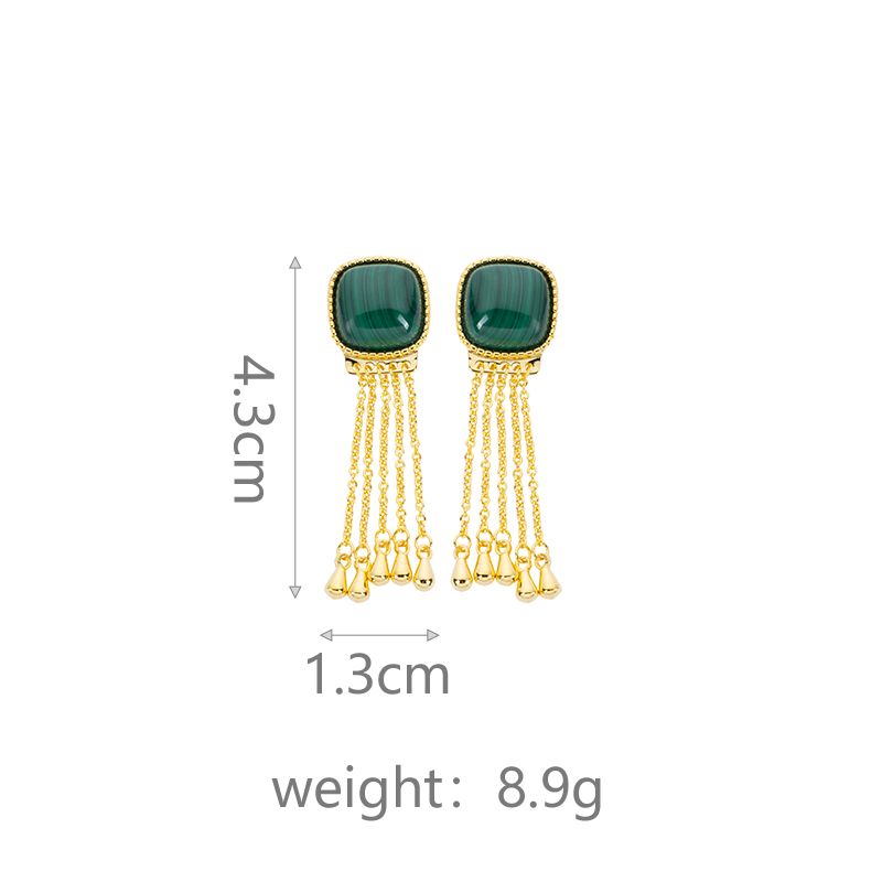 Regal Square Malachite Tassel Earrings in 18K Gold Plated