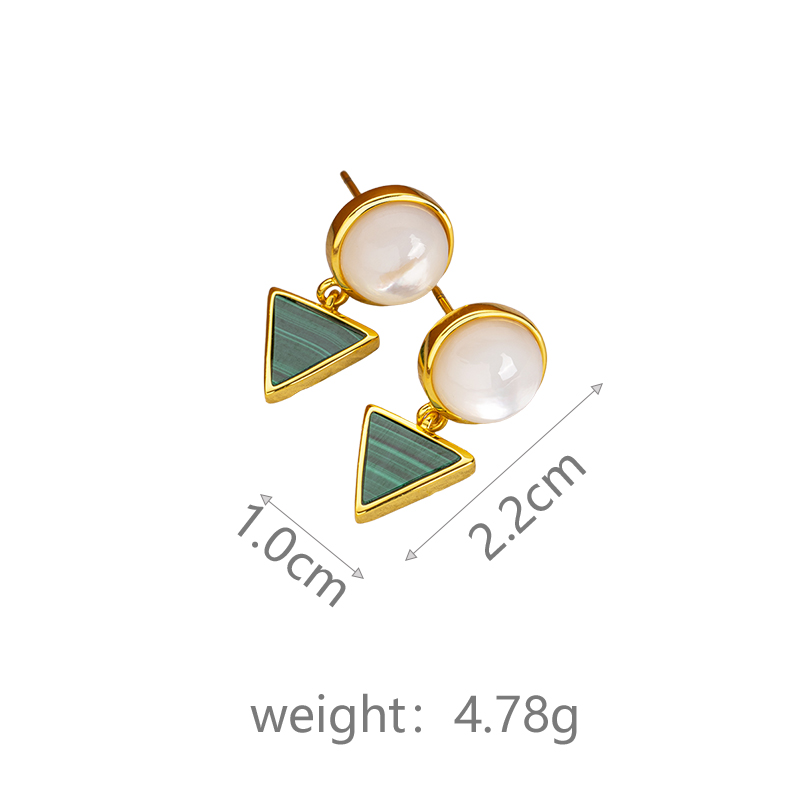 Round MOP & Triangle Malachite Studs - Unique Natural Earrings