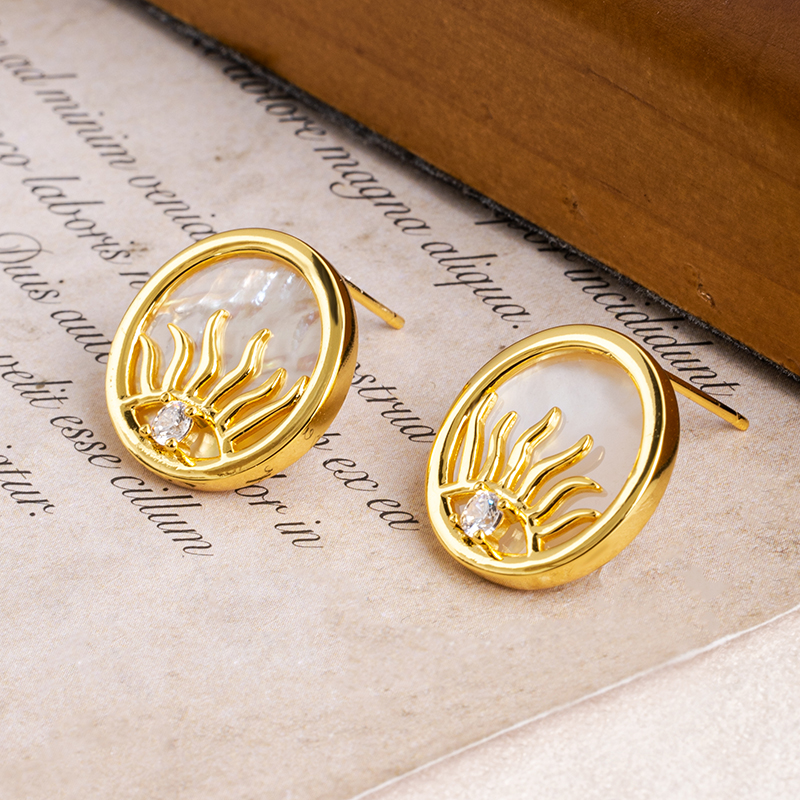 Sun Eye Coin Pendant - Natural White MOP, Boho Chic Necklace