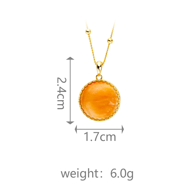 Sunset Orange Round Necklace - Natural Spiny Oyster Shell Pendant with 18K Gold Accent Chain