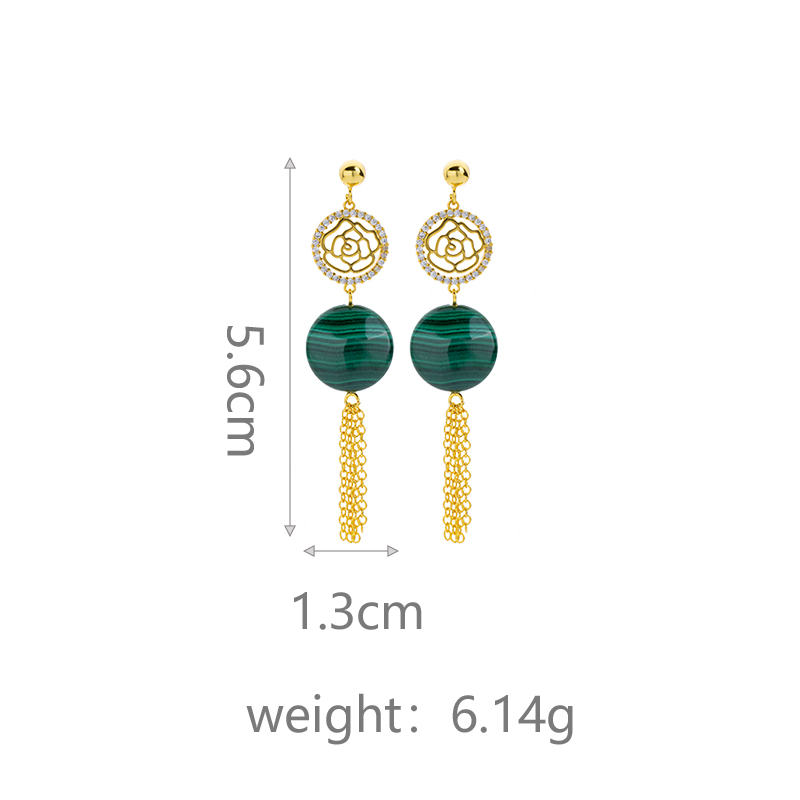 Vintage Malachite Rose Earrings: 18K Gold Plated Tassel